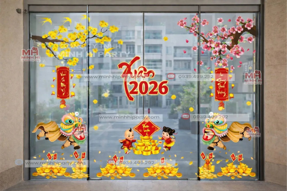 Trong các set trang trí Tết 2026 trọn gói, decal trang trí Tết 2026 đang là lựa chọn được nhiều doanh nghiệp và hộ gia đình ưu tiên nhờ khả năng tối ưu chi phí nhưng vẫn đảm bảo tính thẩm mỹ và không khí Xuân Bính Ngọ.