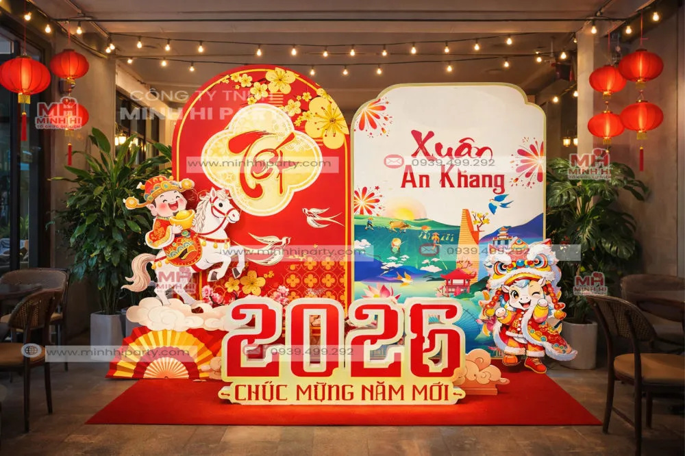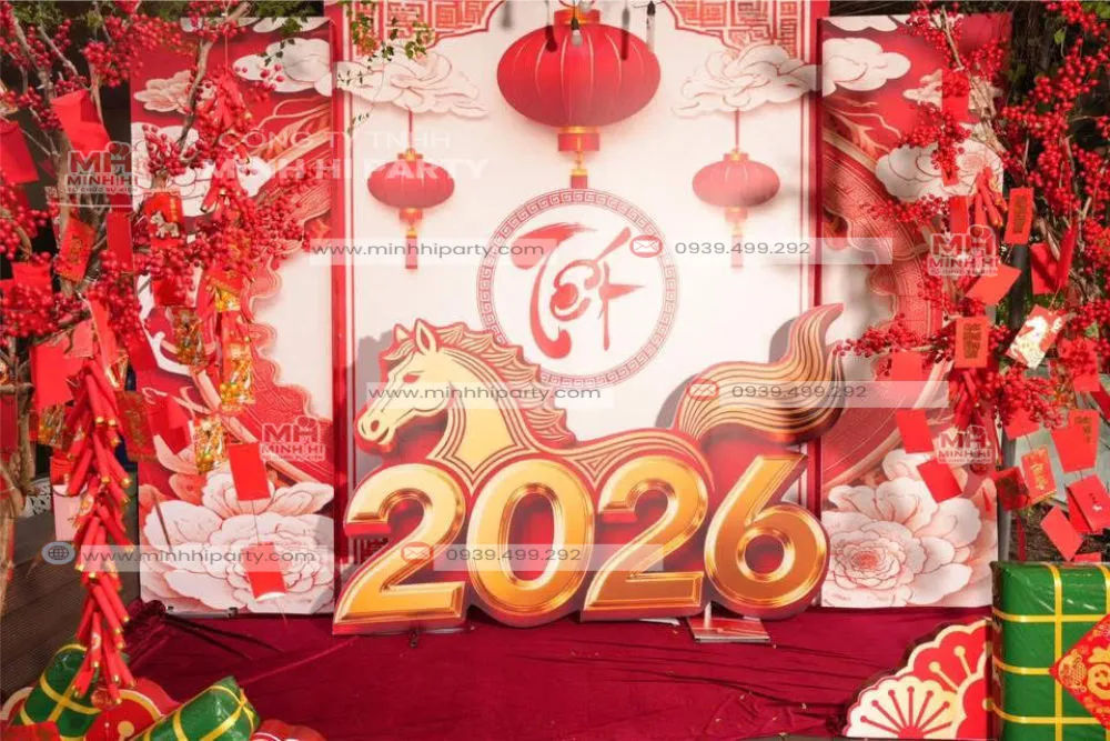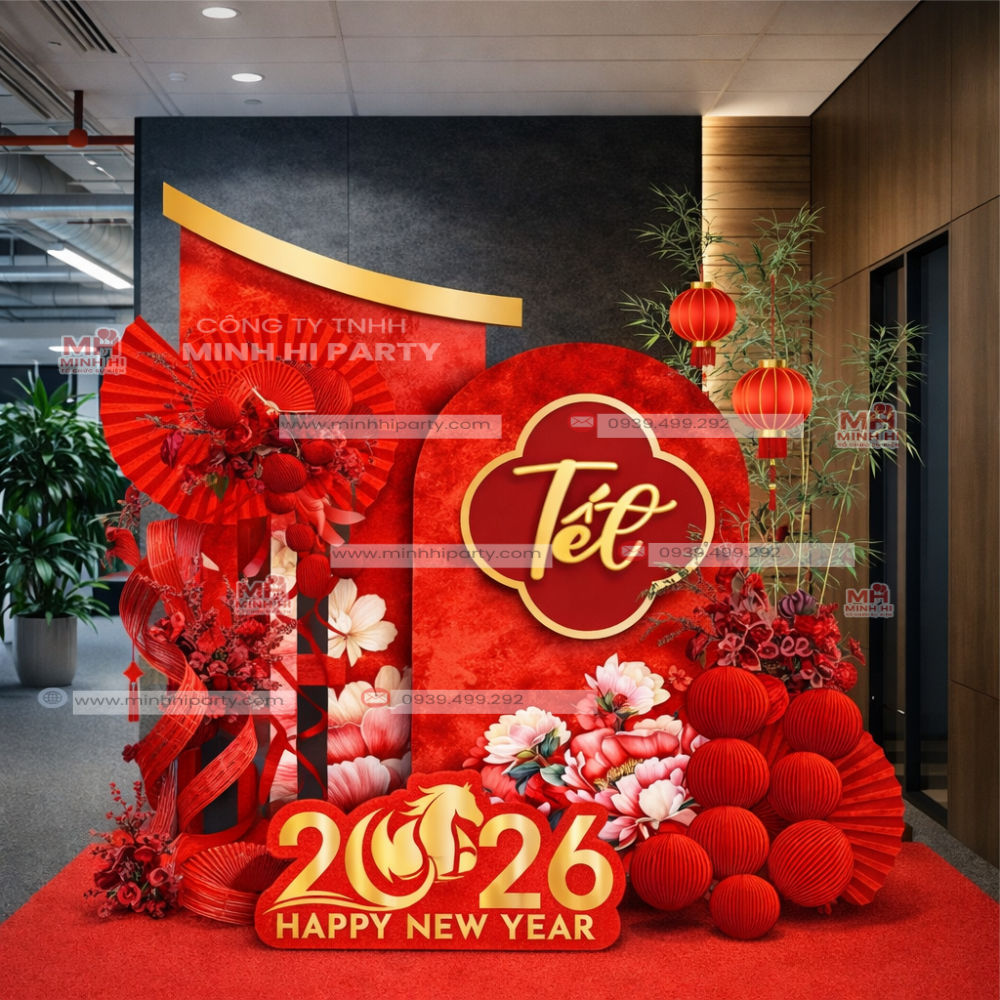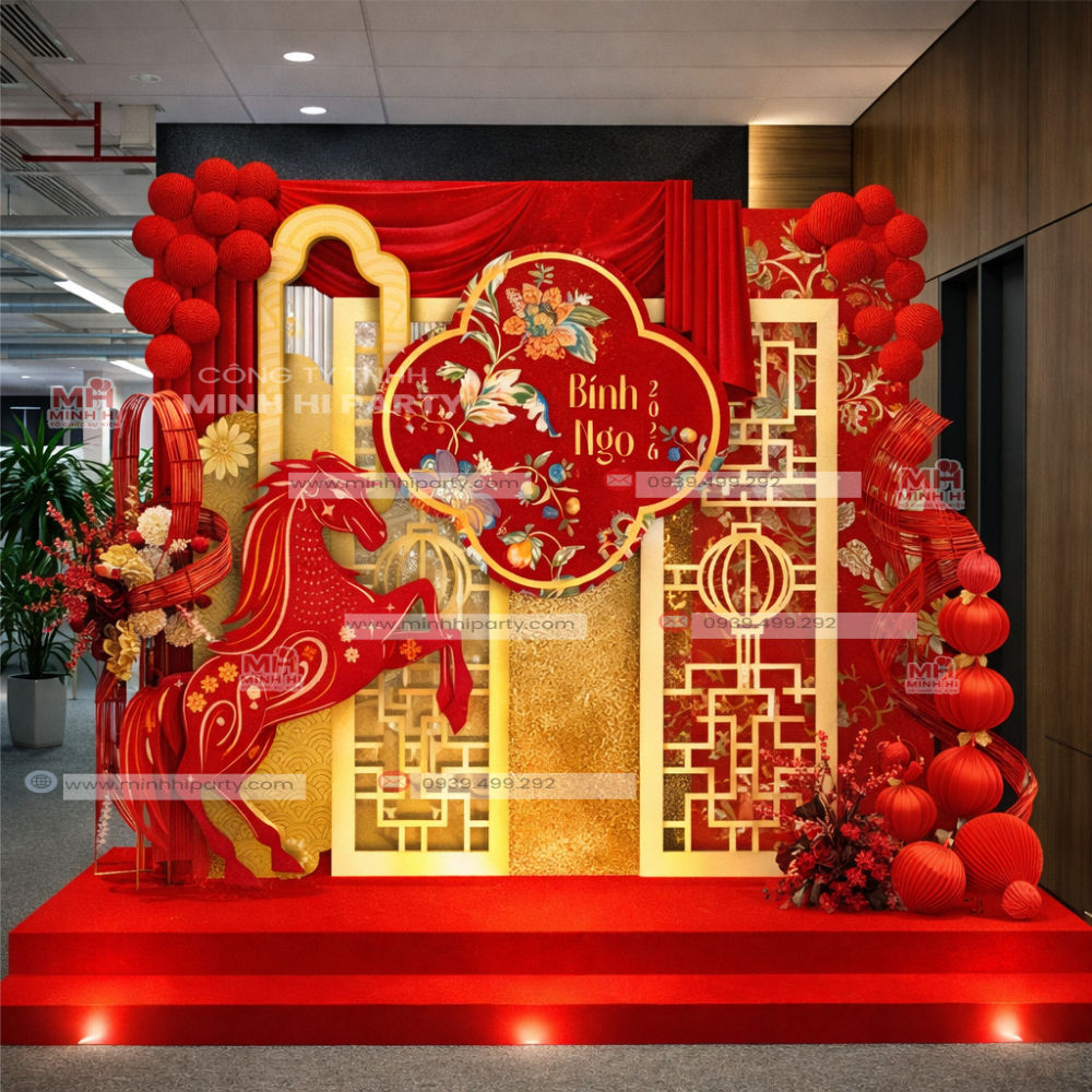 Thuê Background Trang Trí Tết 2026 Trọn Gói – Thi Công Nhanh – Đúng Concept