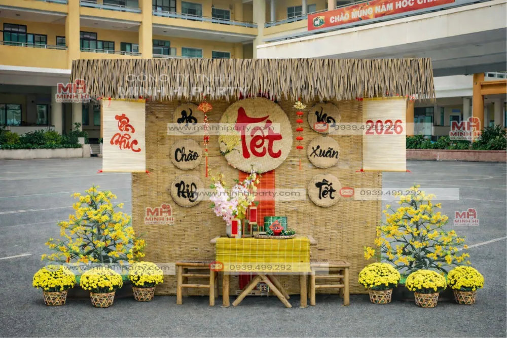 Với giải pháp trang trí Tết cổ truyền 2026 được thiết kế tinh giản, trường học có thể tổ chức các hoạt động đón Xuân, sinh hoạt ngoại khóa và chương trình trải nghiệm Tết ý nghĩa cho học sinh mà không cần đầu tư chi phí lớn. Đồng thời, toàn bộ hạng mục decor đều dễ thi công và tháo dỡ nhanh sau chương trình, đảm bảo tính linh hoạt và phù hợp với kế hoạch hoạt động của nhà trường trong mùa Tết Bính Ngọ 2026.