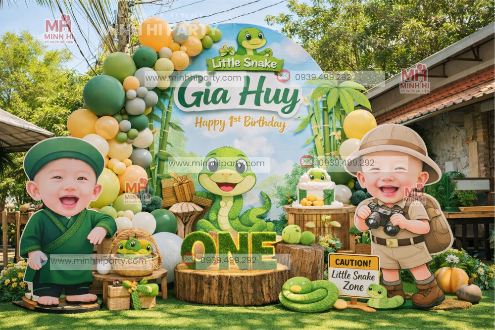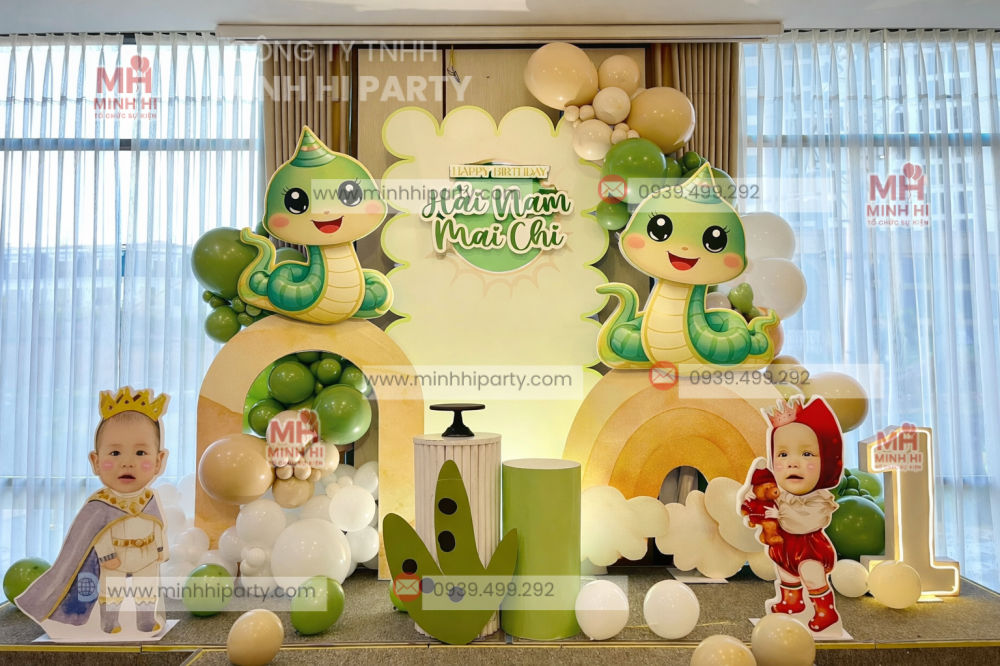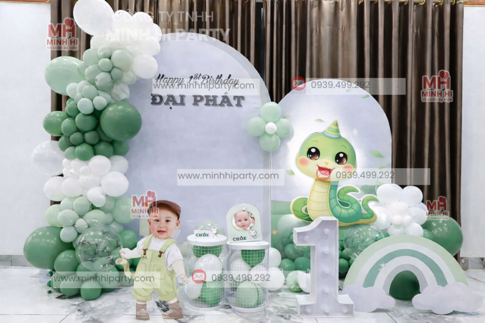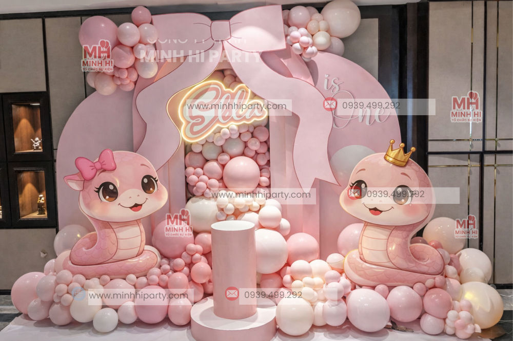 Trang trí thôi nôi bé tuổi Tỵ là lựa chọn được nhiều ba mẹ quan tâm khi chuẩn bị cho cột mốc quan trọng bé tròn 1 tuổi. Với concept rắn chibi dễ thương, màu sắc hài hòa và bố cục trang trí linh hoạt, các mẫu decor thôi nôi bé tuổi Tỵ không chỉ mang lại không gian sinh nhật đẹp mắt mà còn mang ý nghĩa phong thủy tốt lành, tượng trưng cho sự thông minh, nhanh nhẹn và may mắn.