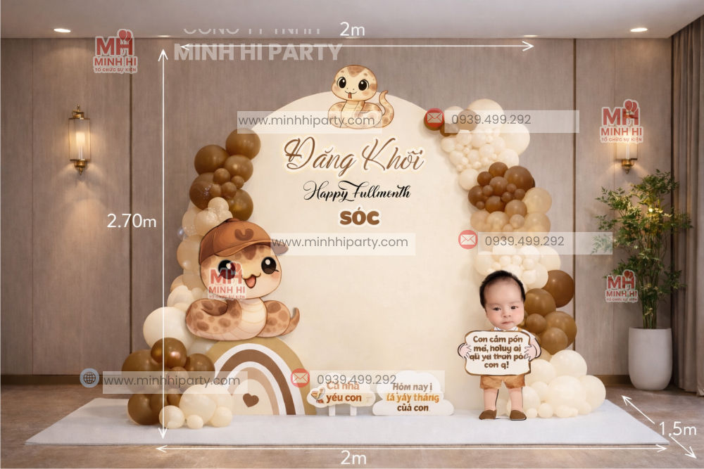 Lưu ý: Các hình ảnh trong bài viết chỉ mang tính chất tham khảo, concept thực tế có thể được điều chỉnh theo diện tích không gian, màu sắc yêu thích và yêu cầu riêng của khách hàng. Minh Hi Party luôn tư vấn tận tình để mang đến buổi tiệc thôi nôi trọn vẹn và ý nghĩa cho bé.