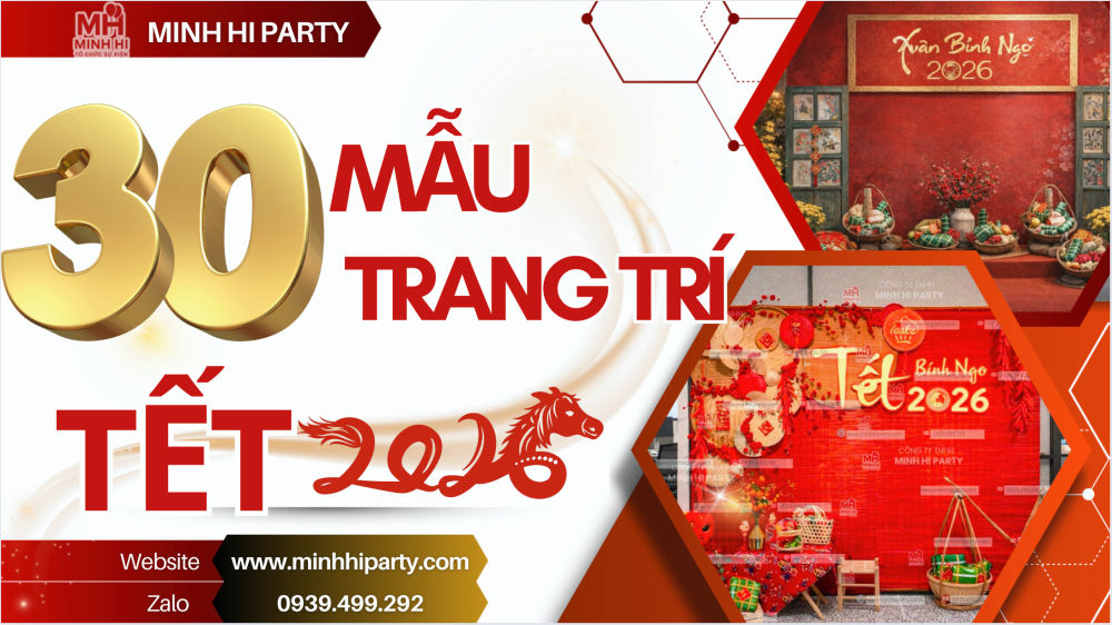 Các mẫu trang trí tết 2026 mới nhất tại Minh Hi Party mời Quý khách hàng tham khảo
