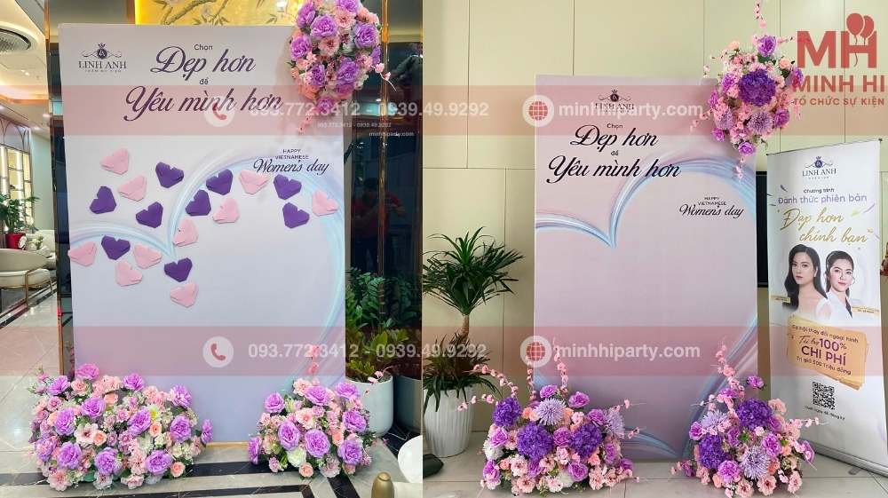 Dự án trang trí ngày Phụ Nữ Việt Nam 20/10 do Minh Hi Party thực hiện cho chuỗi Thẩm mỹ viện Linh Anh gồm 11 chi nhánh trên toàn quốc.
