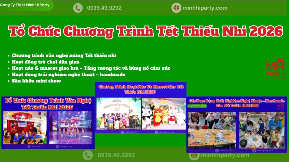 Nếu bạn đang cần dịch vụ tổ chức Tết thiếu nhi 2026 trọn gói, Minh Hi Party sẵn sàng đồng hành từ ý tưởng đến triển khai thực tế.